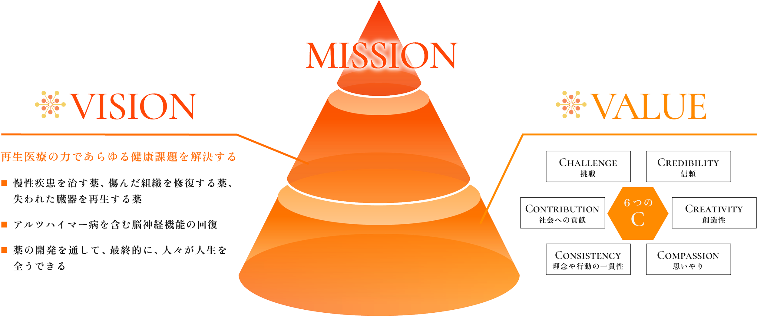 「6つのC」と共に、研究開発に尽力し、グローバル市場をリードします。